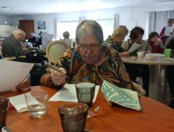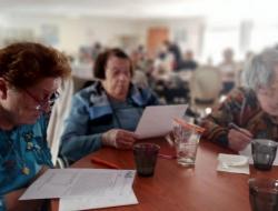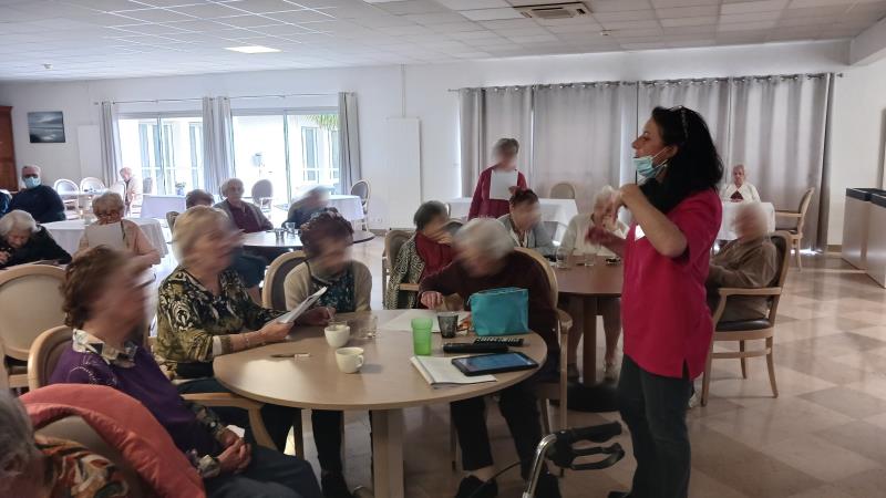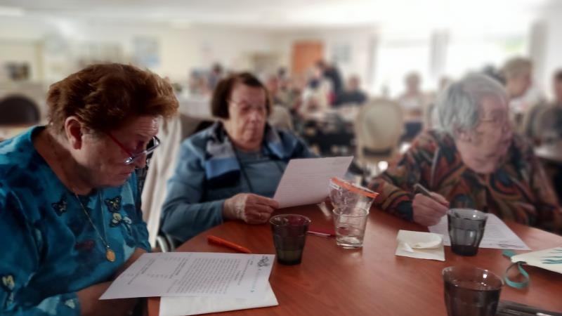 Les résidents et l'animatrice, Audrey, du Clos des Fontaines résidence DomusVI basé à Rochefort ont eu la gentillesse de nous accueillir chaleureusement pour partager une après midi autour d'une dictée à trous.